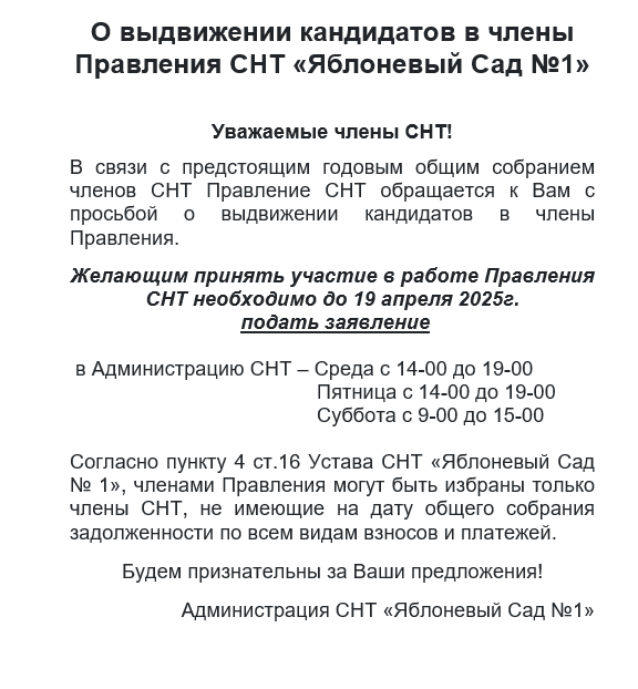 О выдвижении кандидатов в члены Правления